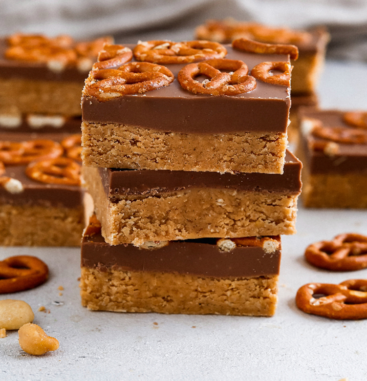 Erdnuss-Schoko-Riegel mit Salzbrezeln